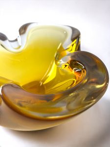 Sometimes referred to as ‘Honey’, this colour of this piece flows from golden amber to clear at the rim.